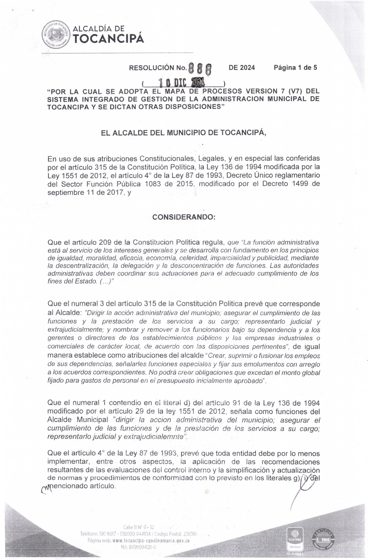 Mapa de Procesos - Resolución 888 del 10 de diciembre de 2024