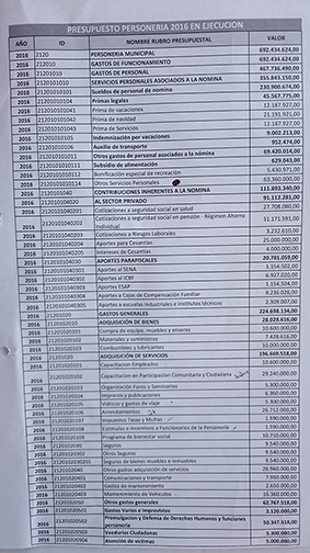 Presupuesto Personería 2016 en Ejecución